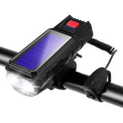 LED-Fahrradbeleuchtung mit Solarladung und Hupe 130 dB | 400 lm | wasserdicht | QX-LY-17-2