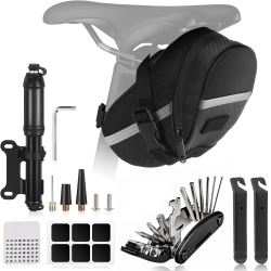 Fahrrad-Werkzeugset | Multifunktionales Reparaturset mit Werkzeugen und Flickzeug in praktischer Tasche | Modell ZUHE-AIO