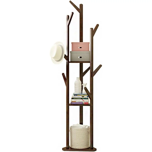 Garderobenständer mit Ablagen | dunkel bambus | BYY-502-RW