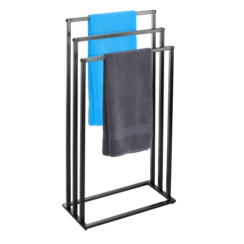 Der Ständer verfügt über drei Querstangen in unterschiedlichen Höhen, sodass Handtücher frei aufgehängt und gelagert werden können, ohne sich zu berühren. Dadurch trocknen sowohl kleine als auch große Badetücher schneller und es entstehen keine unangenehmen Gerüche.